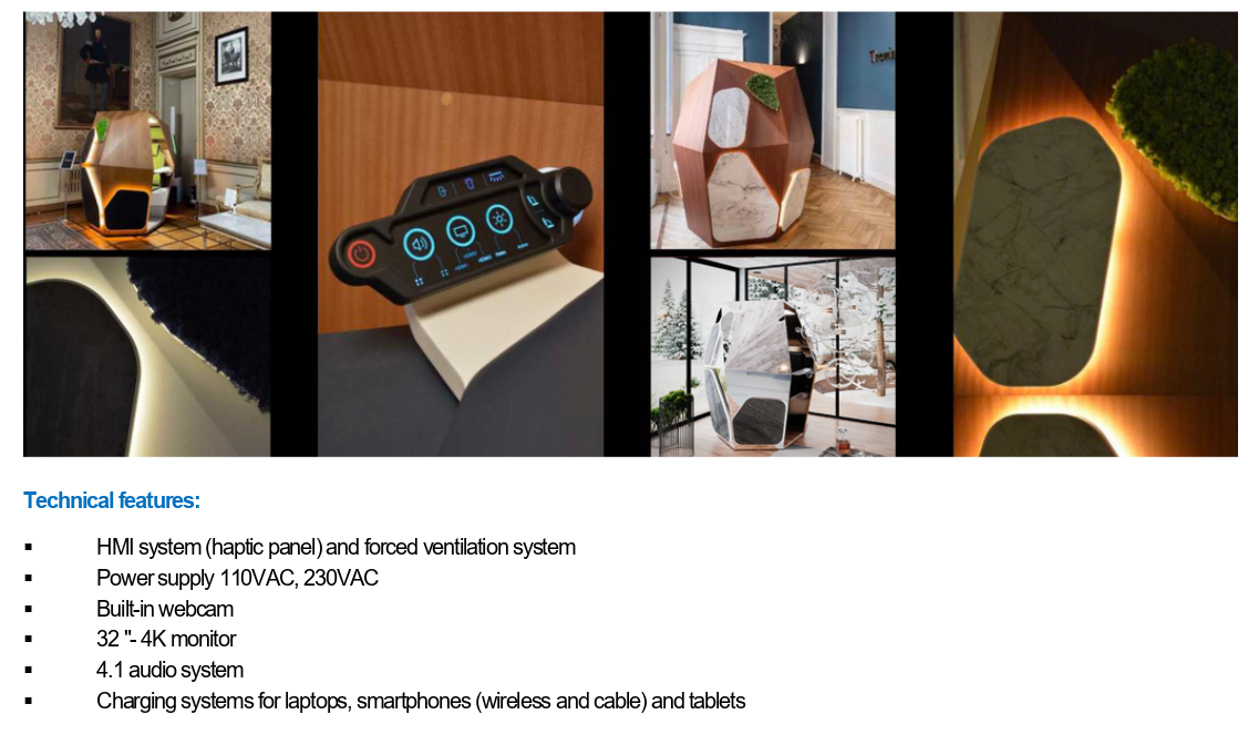 KTN-TRANS OÜ offers a truly innovative and sartorial design object that redefines the concept of space and functionality. A bright, double-breasted technological place is both a sculpture-lamp and a self-contained environment of comfort and technology, offering endless possibilities for work, relaxation, and sensory experiences. Its radiant light creates a dynamic dialogue with the space it inhabits, enhancing both form and atmosphere. Inside, it transforms into a haven — a surprisingly spacious 2.5 m² cosmos designed for working, reading, enjoying audio-visual experiences, and fostering well-being.